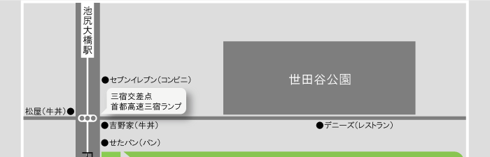 ... 東急田園都市線 池尻大橋駅、三軒茶屋駅より徒歩約10分